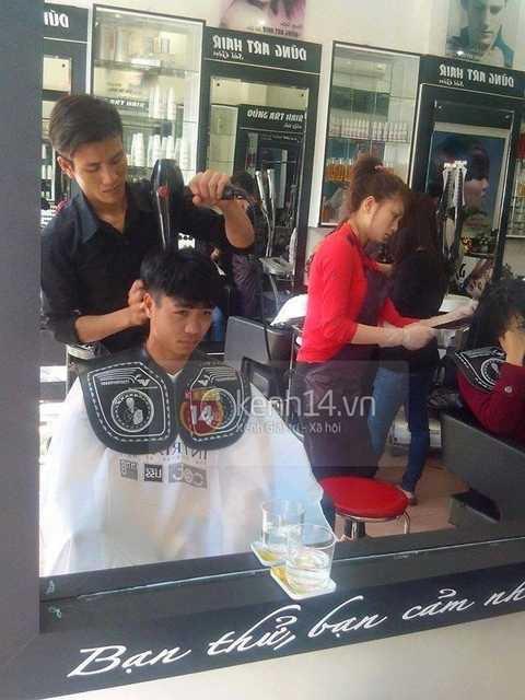 | Công Phượng tới tiệm để chia tay mái tóc dài. |