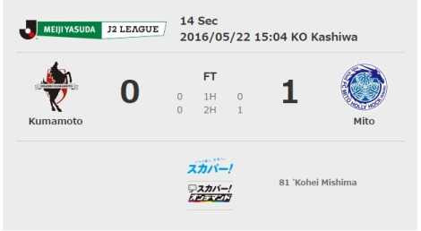 Không thể ghi được bàn thắng, Kumamoto còn phải trả giá bằng bàn thua ở phút thứ 81. Trong một pha phản công nhanh, tiền đạo Kohei Mishima đã ghi bàn ấn định chiến thắng 1-0 cho Mito Hollyhock.