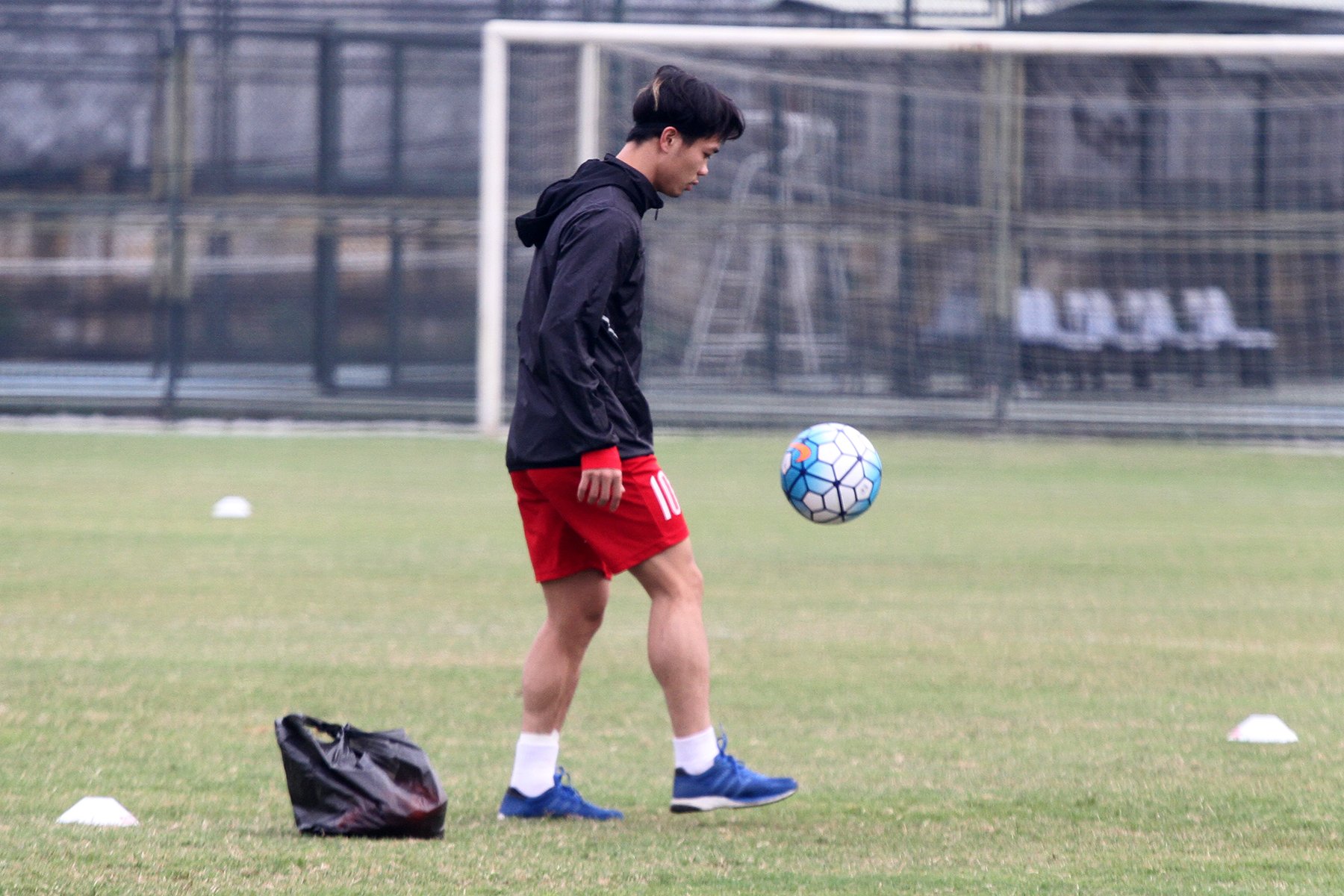 Công Phượng vẫn phải tập riêng, nhưng anh có thể tâng bóng và thực hiện những động tác tâng bóng bằng chân.