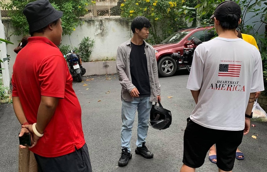 Công Phượng (giữa) và Tuấn Anh (áo trắng) trong một phân cảnh ở TP.HCM. Ảnh: FBNV.