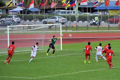 54' Xuân Trường mạnh dạn tung một cú dứt điểm từ xa. Đáng tiếc bóng đi chưa hiểm và thủ thành U21 Singapore đã kịp thời đẩy bóng hết đường biên ngang.