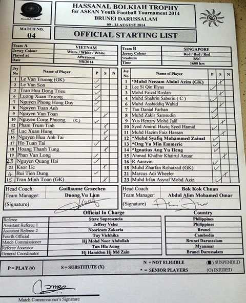 U21 Singapore: Rohaizad, Qiu Llyyas, Seberin, Farhan, Samsudin, Syed Harmid, Zainal, Emmeric, Yu Heng, Aaravin, Mohd Aziz.