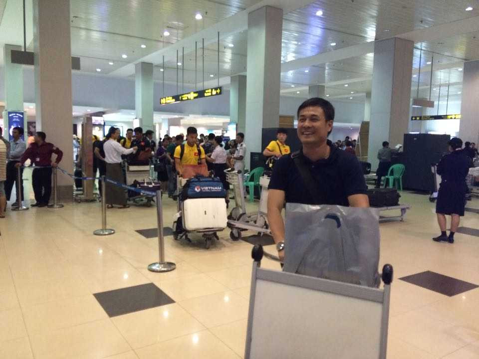 HLV Hữu Thắng tươi cười tại sân bay quốc tế Yangon