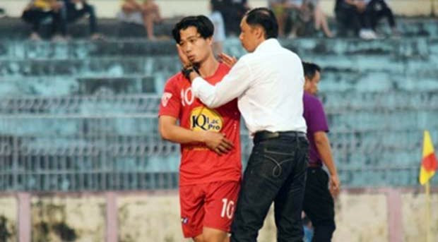 Công Phượng gặp chấn thương trên sân Quảng Nam.