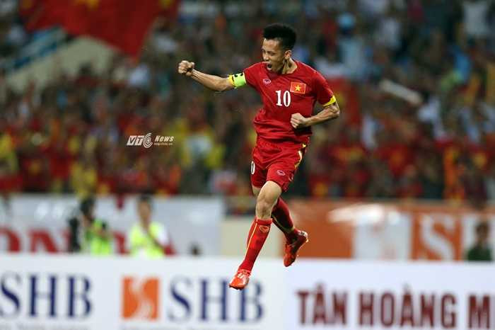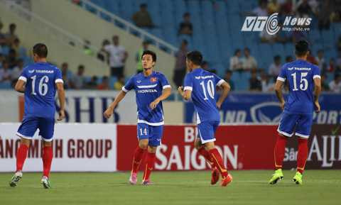 | Văn Quyết ăn mừng bàn thắng lịch sử (Ảnh: Quang Minh) |