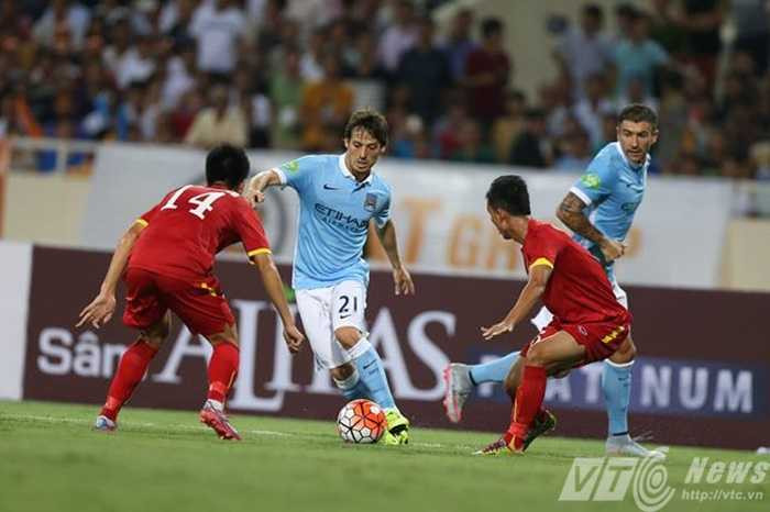 44' Những pha đập nhả ở trung lộ giúp David Silva có cơ hội ra chân ngay rìa vòng cấm. Bóng đi nhẹ và trúng vị trí Tô Vĩnh Lợi.