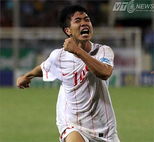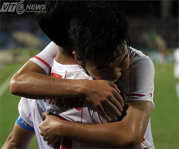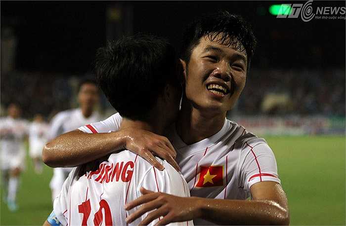 Đồng đội chia vui cùng tiền đạo xứ Nghệ