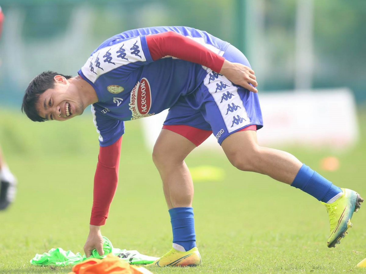Công Phượng cười tươi rói trên sân tập. Anh lúc này là niềm hy vọng lớn nhất của TP.HCM khi đang có phong độ cao, sự ổn định.