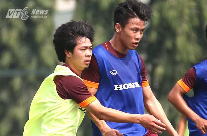 Trên sân tập, Công Phượng và Mạnh Hùng thường xuyên đối đầu nhau.