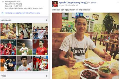 Trên trang cá nhân của mình, tiền đạo Công Phượng viết: “Chúc các bạn ngày mai thi tốt nhé!” kèm theo một bức ảnh tiền đạo này đang ăn bữa tối.
