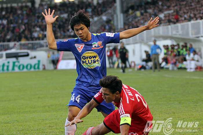 (VTC News) - Công Phượng có hành động ăn mừng hơi phấn khích sau khi cầu thủ Minh Tùng của Than Quảng Ninh dính thẻ đỏ chiều qua 31/1.