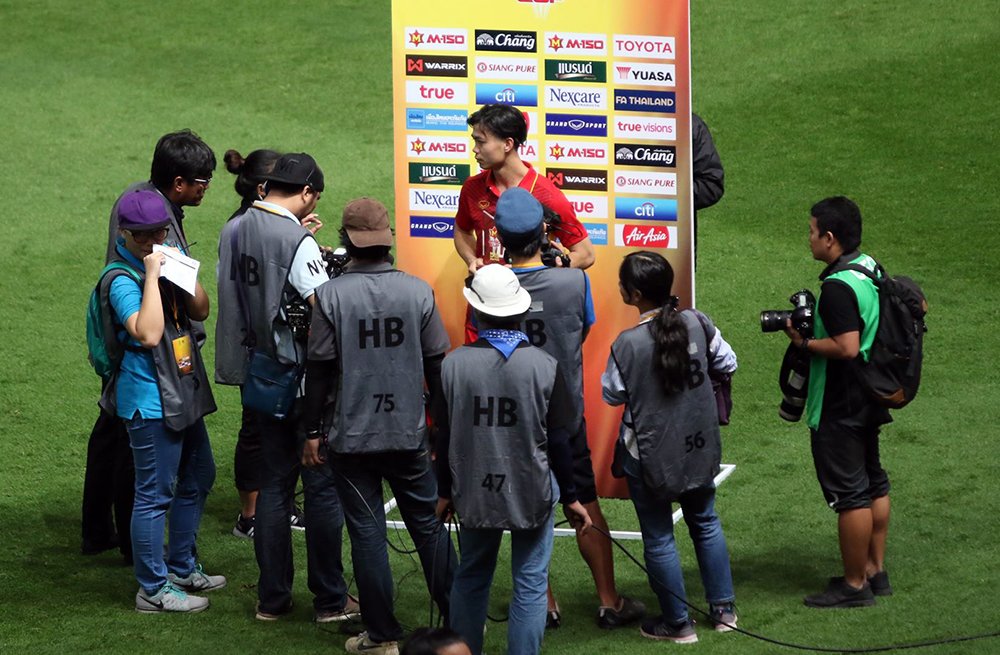 Công Phượng trả lời phỏng vấn sau trận. (Ảnh: Hoàng Tùng)