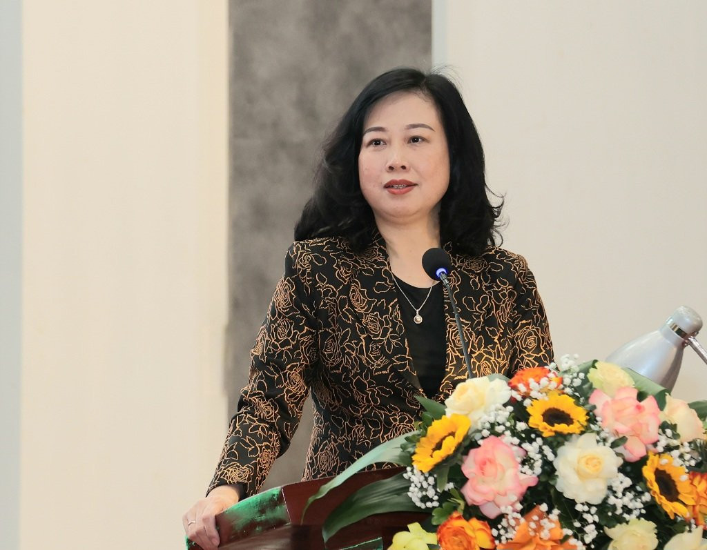 Bộ trưởng Bộ Y tế Đào Hồng Lan tại Hội nghị tổng kết 10 năm thực thi Luật Phòng, chống tác hại của thuốc lá.