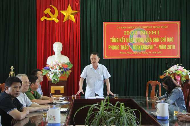 Ông Nguyễn Quang Việt, chủ tịch UBND phường Hưng Phúc chủ trì buổi đối thoại với người dân chiều 14/11 - Ảnh: Doãn Hòa