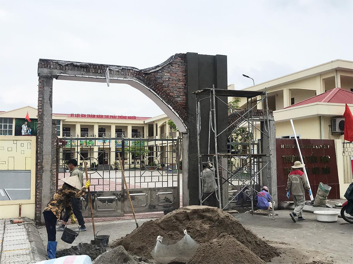 Ngay sau khi xảy ra sự cố, chúng tôi đã xin ý kiến UBND huyện Kiến Thuỵ để khắc phục, đồng thời yêu cầu đơn vị thi công khẩn trương khắc phục, bỏ 2 phần dầm bản 2 bên cổng trường, lột toàn bộ đá granit ốp cổng trường, trát lại và ốp gạch thẻ, dự kiến hoàn thành trong ngày 12/5.
