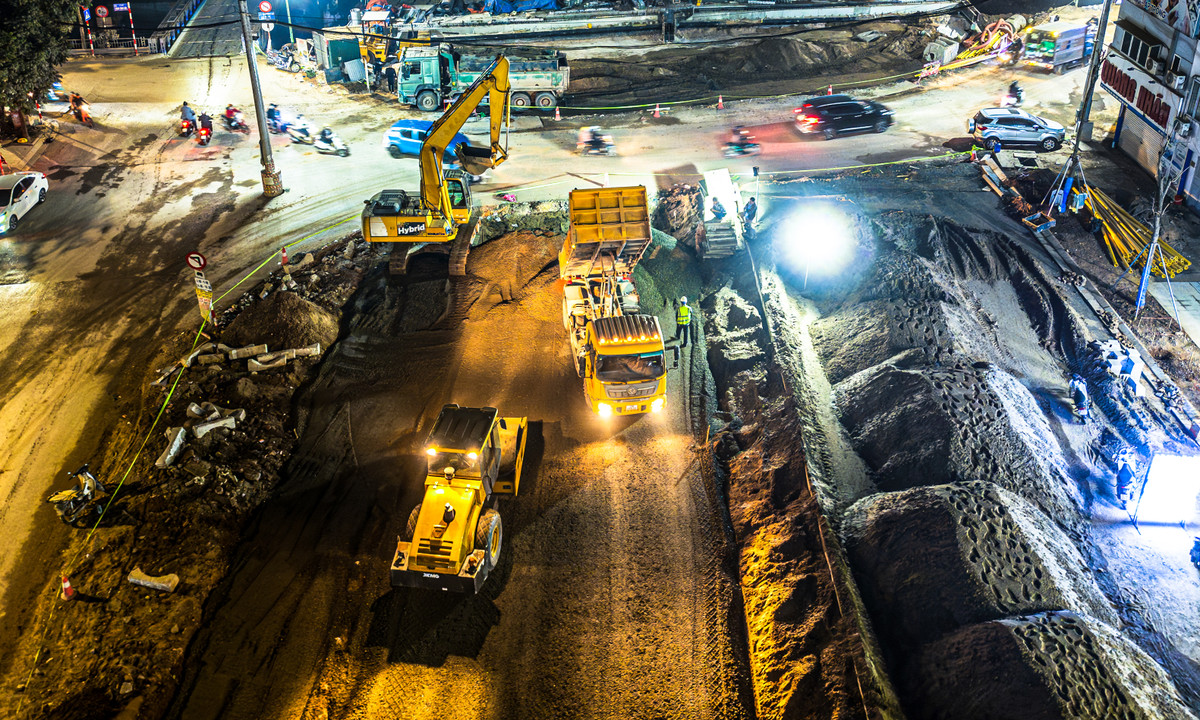 Công trường được tổ chức thi công “3 ca, 4 kíp”, tranh thủ tối đa điều kiện thời tiết thuận lợi để đẩy nhanh tiến độ, bảo đảm các hạng mục chính kịp hoàn thành theo kế hoạch.