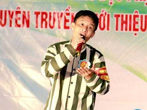 | Phạm nhân Bùi Xuân Lâm trong một hoạt cảnh tham gia Hội thi "kể chuyện theo sách" |