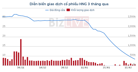 Thời gian sau đó, cổ phiếu HNG được giao dịch trong khoảng từ 28.000 đồng/đơn vị đến 30.000 đồng/đơn vị. Tuy nhiên, đến khoảng giữa tháng 12 năm ngoái, cổ phiếu này bắt đầu "lao dốc không phanh" theo cổ phiếu công ty mẹ HAG.