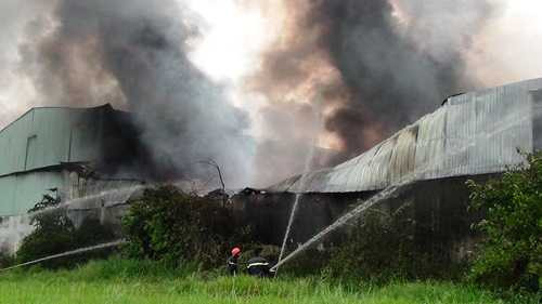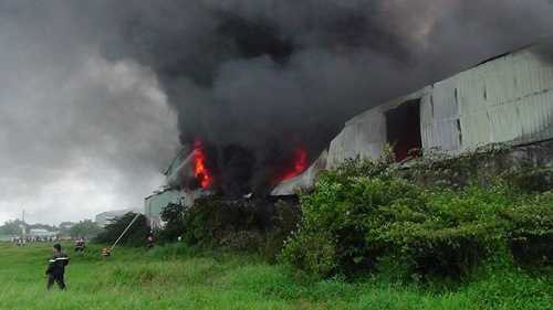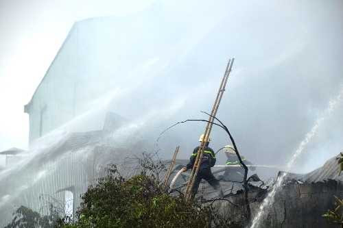 Rất may, đám cháy đã dập tắt trước khi lan sang cụm công ty sản xuất gỗ và cô ty may mặc kế bên.