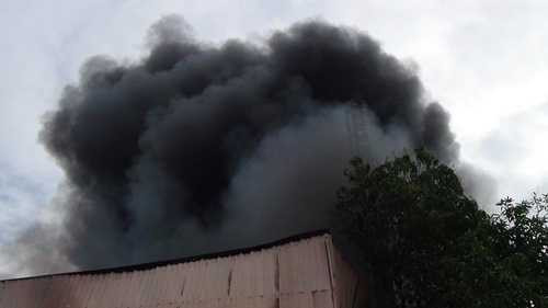 Lửa bùng phát nhanh cộng thêm khói đen bốc cao trăm mét khiến người dân hoảng sợ.