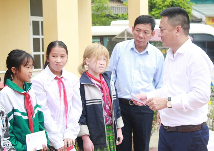 Đại diện Công ty trao tặng 40 suất quà cho các em học sinh nghèo vượt khó.