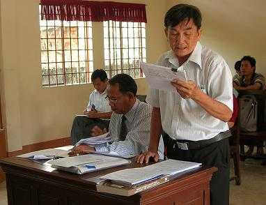 | Luật sư Việt (đứng) không đồng ý với phán quyết của cấp sơ thẩm nên kháng cáo bản án tuyên nông dân thắng kiện.Ảnh: Diễm Hằng |