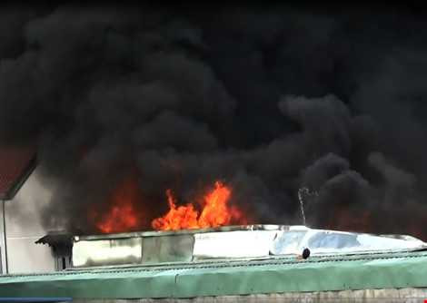 Lửa nhanh chóng bốc lên bao trùm hàng ngàn mét vuông công ty.