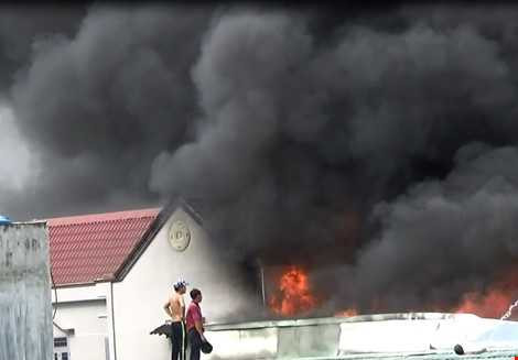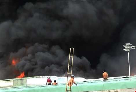 Hiện hàng trăm người dân đang nháo nhào lo lắng đám cháy mỗi lúc một lớn. Lửa vẫn bao trùm toàn bộ công ty đe dọa những căn nhà kế bên.