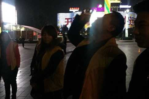 Mail Online dẫn nguồn báo chí địa phương cho biết khoảng 50-60 nhân viên trong đồng phục vàng đã tụ tập tại một quảng trường rộng để chứng kiến hình phạt này. Nhiều người trong số cầm những tờ bướm giới thiệu vật liệu và dịch vụ xây dựng. Một nhân viên cho biết họ làm việc cho một tập đoàn gồm 10 công ty xây dựng tại địa phương.