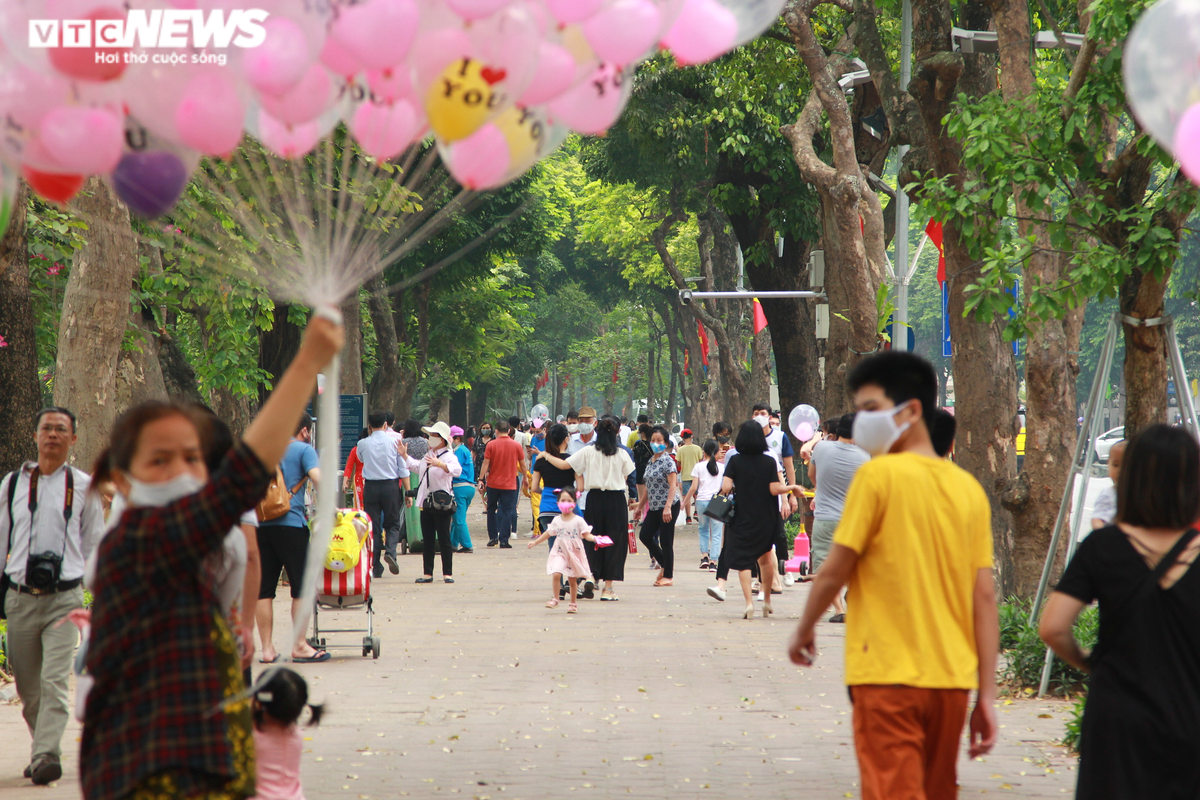 Các công viên, khu vui chơi đóng cửa nên người dân đổ xô lên khu vực hồ Hoàn Kiếm để vui chơi, ăn uống...
