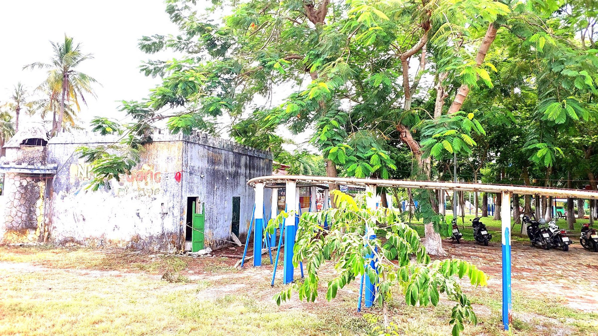 Cạnh đó, hạng mục nhà chờ tại các điểm vui chơi bỏ không lâu ngày khiến nền gạch bong tróc, mái tôn gãy sập.