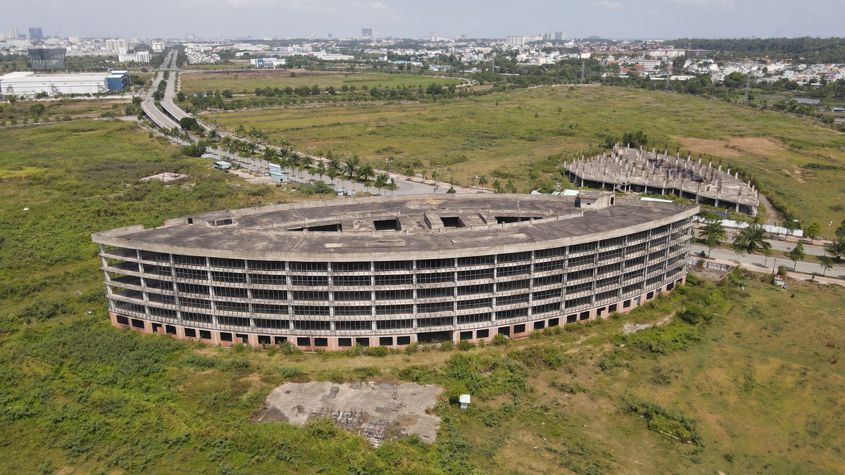 Tuy nhiên, sau 7 năm kể từ ngày khởi công, dự án đã dừng thi công. Nhìn từ trên cao, phần lớn dự án chỉ là bãi đất trống và vài hạng mục dang dở.