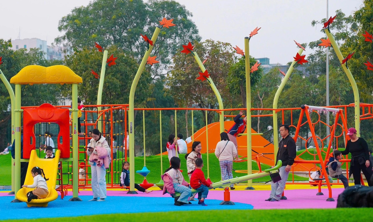 Ghi nhận của PV Báo Điện tử VTC News, một trong những điểm thay đổi rõ nét nhất sau cải tạo là khu vui chơi dành cho trẻ em. Thay vì các thiết bị đơn giản, manh mún như trước, công viên được đầu tư các khu vui chơi liên hoàn với thiết kế đa dạng, hiện đại và đảm bảo an toàn.
