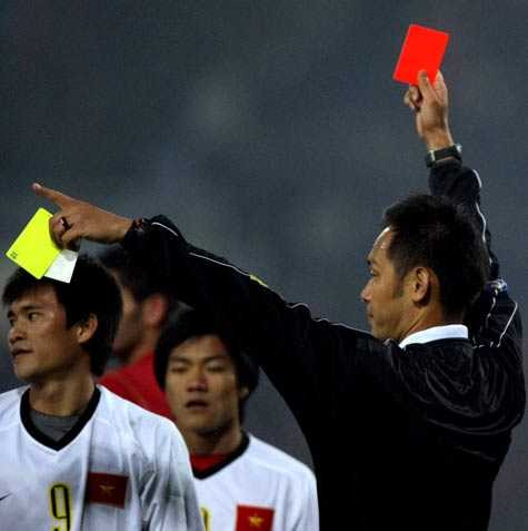 | Công Vinh và chiếc thẻ đỏ trong trận đấu với Lebanon ở vòng loại Asian Cup 2011 |
