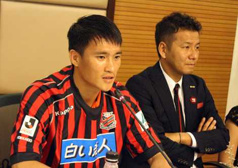| Công Vinh trong buổi ký kết hợp đồng cho mượn giữa SLNA và Sapporo 5 tháng trước. |
