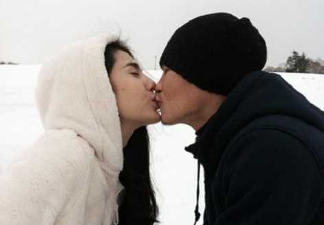 Công Vinh hôn Thủy Tiên giữa tuyết trắng