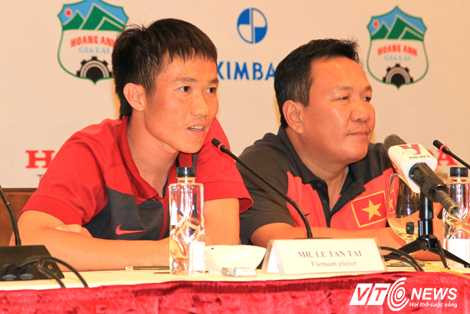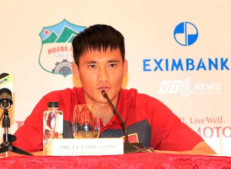 | Tiền đạo Lê Công Vinh trả lời trong buổi họp báo (Ảnh: Quang Minh) |