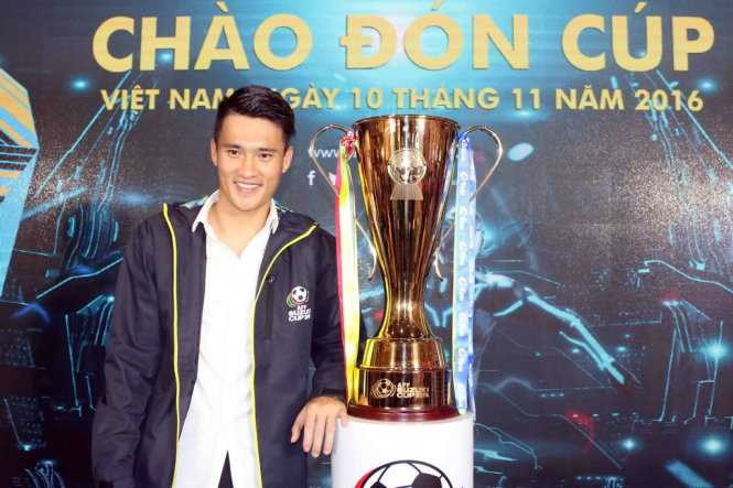 Công Vinh và chiếc Cúp AFF 2016. Ảnh: N.K