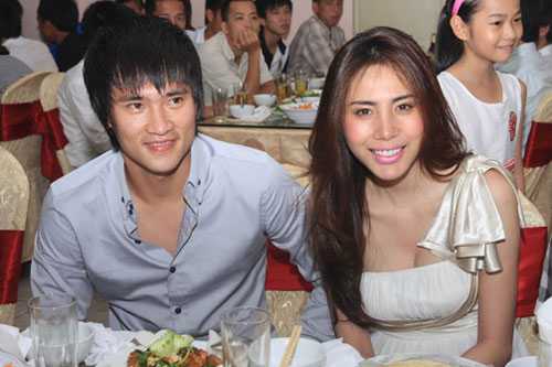 | Công Vinh rất vui vẻ bên cô ca sĩ xinh đẹp, dường như những phiền muộn của chấn thương đứt dây chằng đầu gối đã được bỏ lại phía sau. |