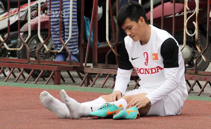 Và rất tiếc cho Công Vinh khi đến giữa buổi tập, sau một tình huống va chạm với tân binh Khuất Hữu Long, anh đã bị chấn thương ở cổ chân.