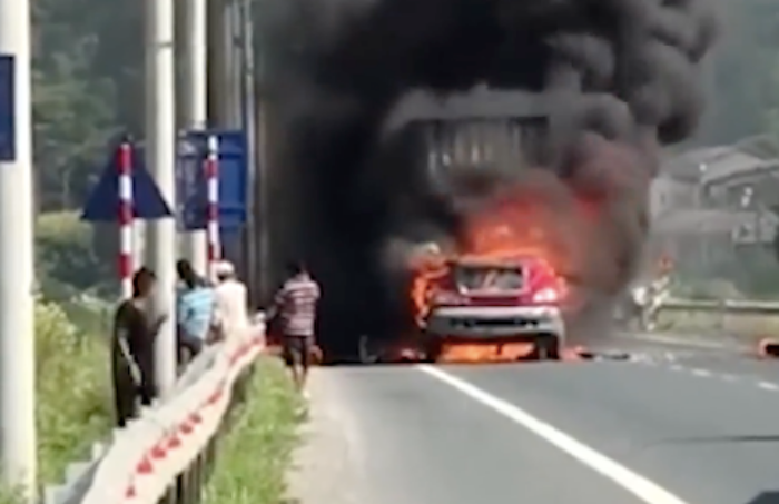 Video: Container cháy ngùn ngụt trên quốc lộ, dân liều lĩnh đứng sát quay phim