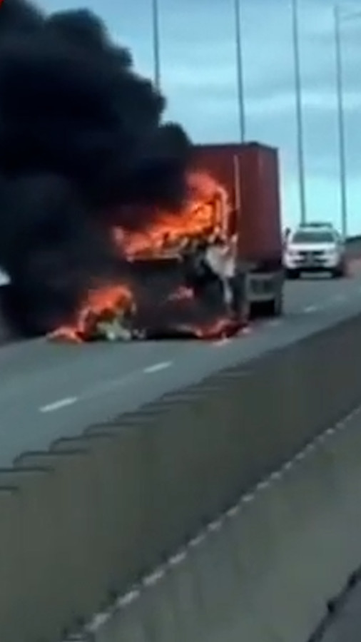 Container bốc cháy ngùn ngụt trên cao tốc TP.HCM - Dầu Giây