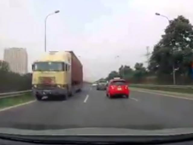 Video: Xe container phóng ngược chiều, náo loạn Đại lộ Thăng Long