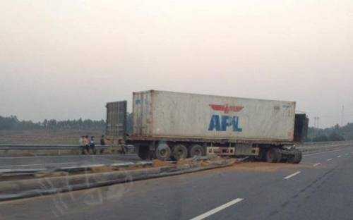 | Chiếc xe container chắn ngang đường cao tốc Nội Bài - Lào Cai (Ảnh: Otofun) |