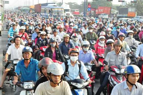 | Hàng ngàn phương tiện chen chúc nhau di chuyển trên đường |