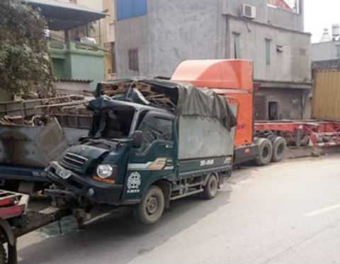 Sau đó, chiếc xe tải BKS 29C-419.05 bị container đẩy đi hơn 20m rồi đâm vào một xe tải khác mang BKS 29C-290.71. Cả 3 xe chỉ dừng lại khi đầu xe tải BKS 29C-290.71 đâm vào một gốc cây ven đường.