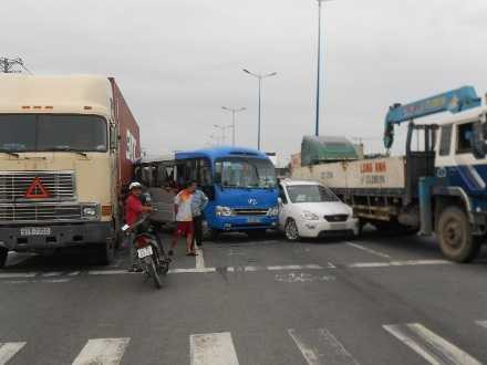 Tại hiện trường, 6 xe dính vào nhau nằm chắn ngang đường, hư hỏng nặng phần đầu, đuôi. Vụ tai nạn đã khiến giao thông trên Xa lộ Hà Nội ùn tắc nghiêm trọng, các phương tiện phải xếp hàng dài di chuyển rất khó khăn.
