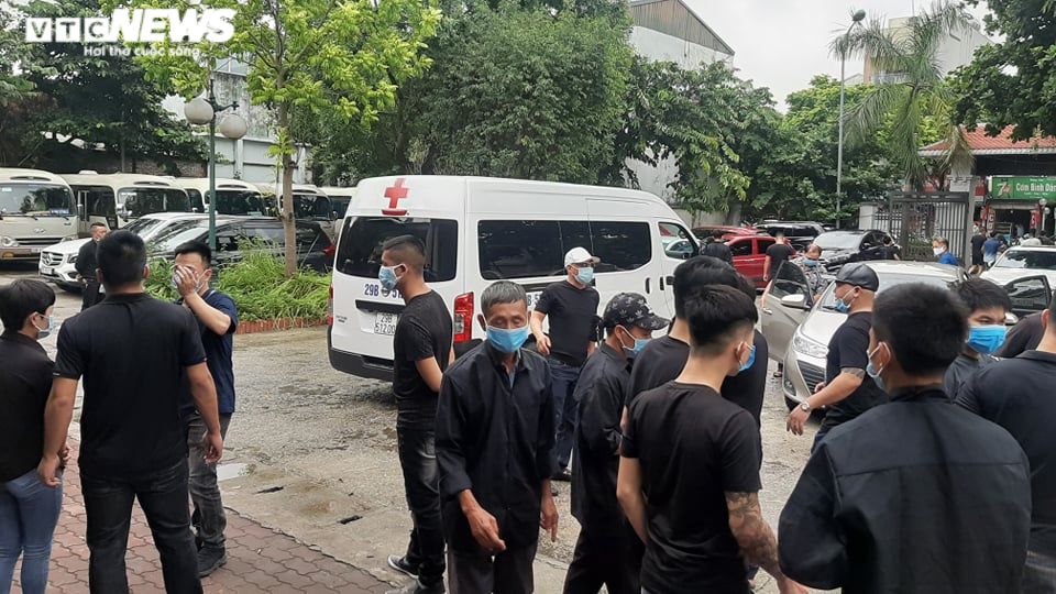 Ô tô đưa thi thể nạn nhân ra khỏi nhà tang lễ về nhà mai táng.
