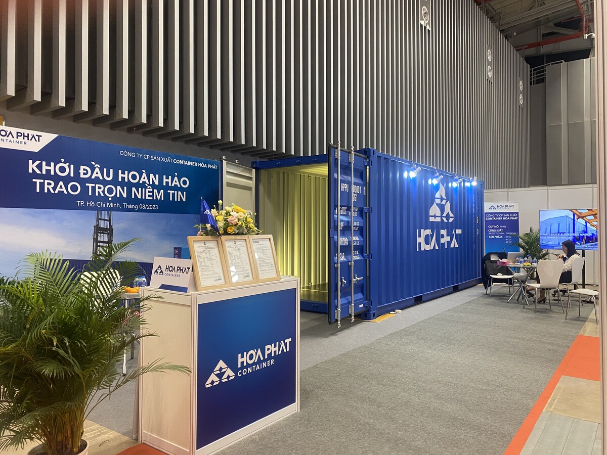 Gian hàng Container Hòa Phát nổi bật với sản phẩm container rỗng loại 20feet được mang tới trưng bày trực tiếp tại triển lãm.