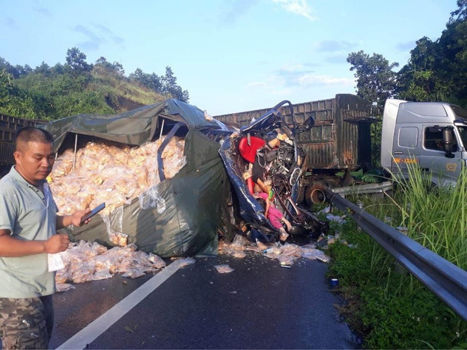 Khi đến địa phận xã Hoàng Thắng, huyện Văn Yên (tỉnh Yên Bái), xe đang trên đà xuống dốc thì xe đầu kéo container mang BKS 88C - 17388 kéo theo rơ móoc mang biển kiểm soát 88R-008.77 đi chiều từ Hà Nội - Lào Cai lao qua dải phân cách văng sang đường, khiến chiếc xe tải tông trúng thùng container.